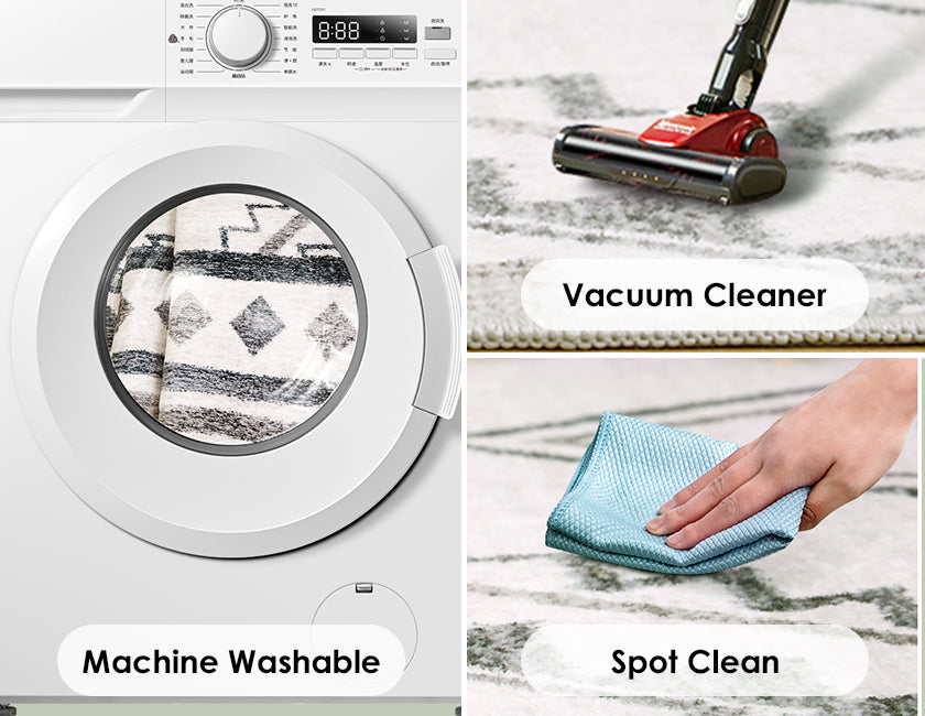 Our washable rugs are made from premium fibers, offering stain and splash resistance. For long-term use, when dust and dirt build up, you have the option to vacuum or machine wash in a properly-sized washing machine