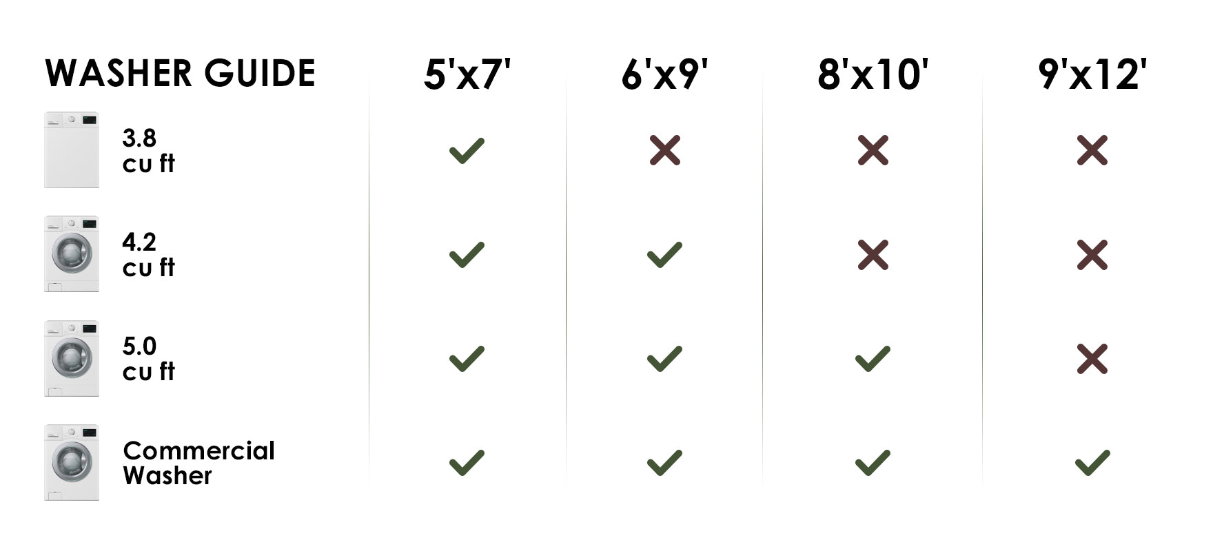 The rug is machine washable; choose the appropriate washing machine size based on the rug dimensions. Please refer to the diagram below for guidance.