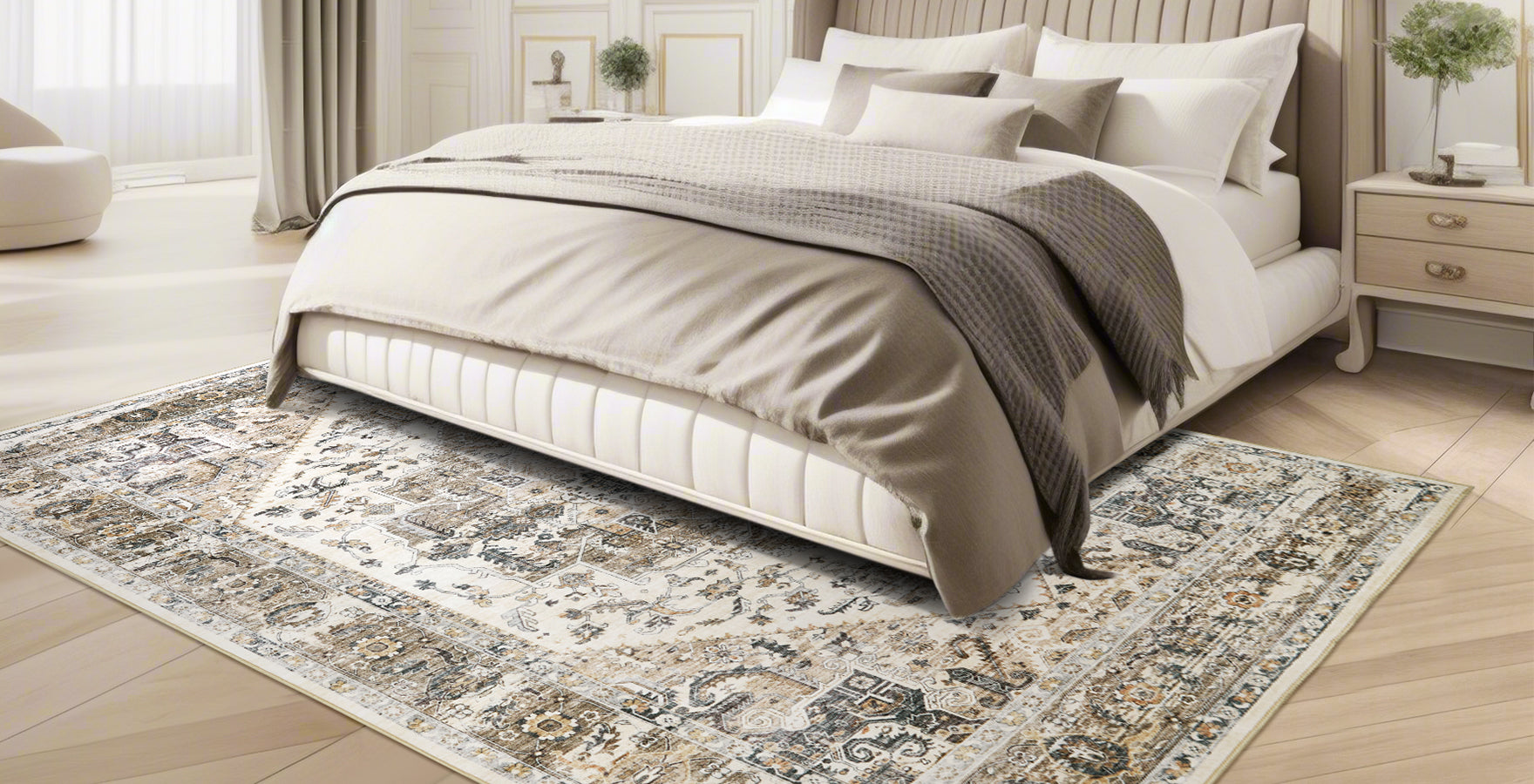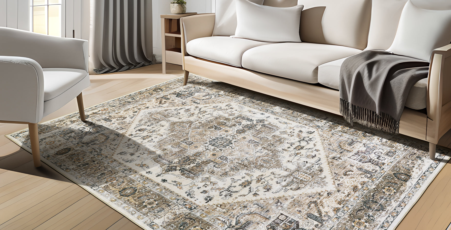This area rugs features a beautiful faded style and a unique pattern design. Available in various sizes, it complements a variety of home decor styles and can be placed in areas such as the living room, bedroom, dining room, or office.