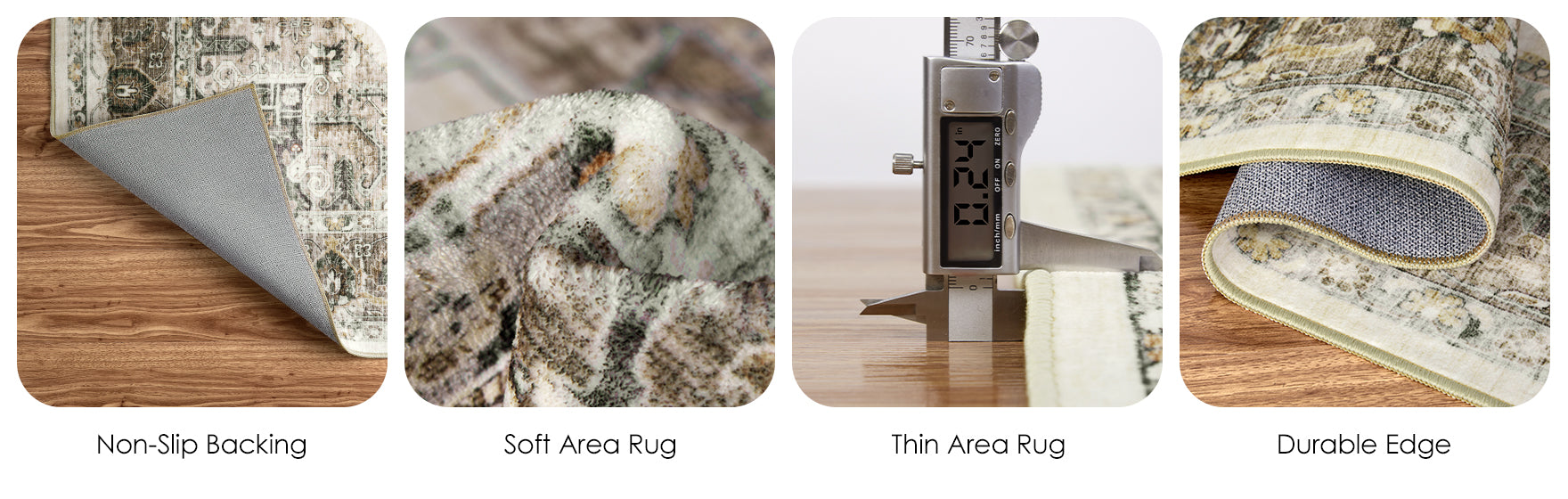 The boho rug is made with a TPE non-slip rubber backing, ensuring stability and preventing safety hazards such as tripping and falling.